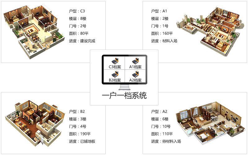 建设方,政府,小业主为了了解施工方的建造进度以及质量希望看施工的每个环节的细节,而将信息集成到二维码中供建设方,政府,小业主随时入户调取。