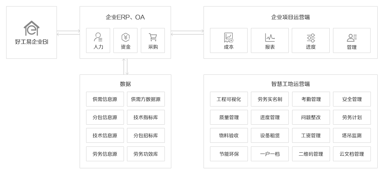 针对于管理成本,用工成本增加,好工易提供数据分析系统,进度管理系统,材料管理系统配合单项目的解决方案互通数据,从而全方位管理企业所有项目。